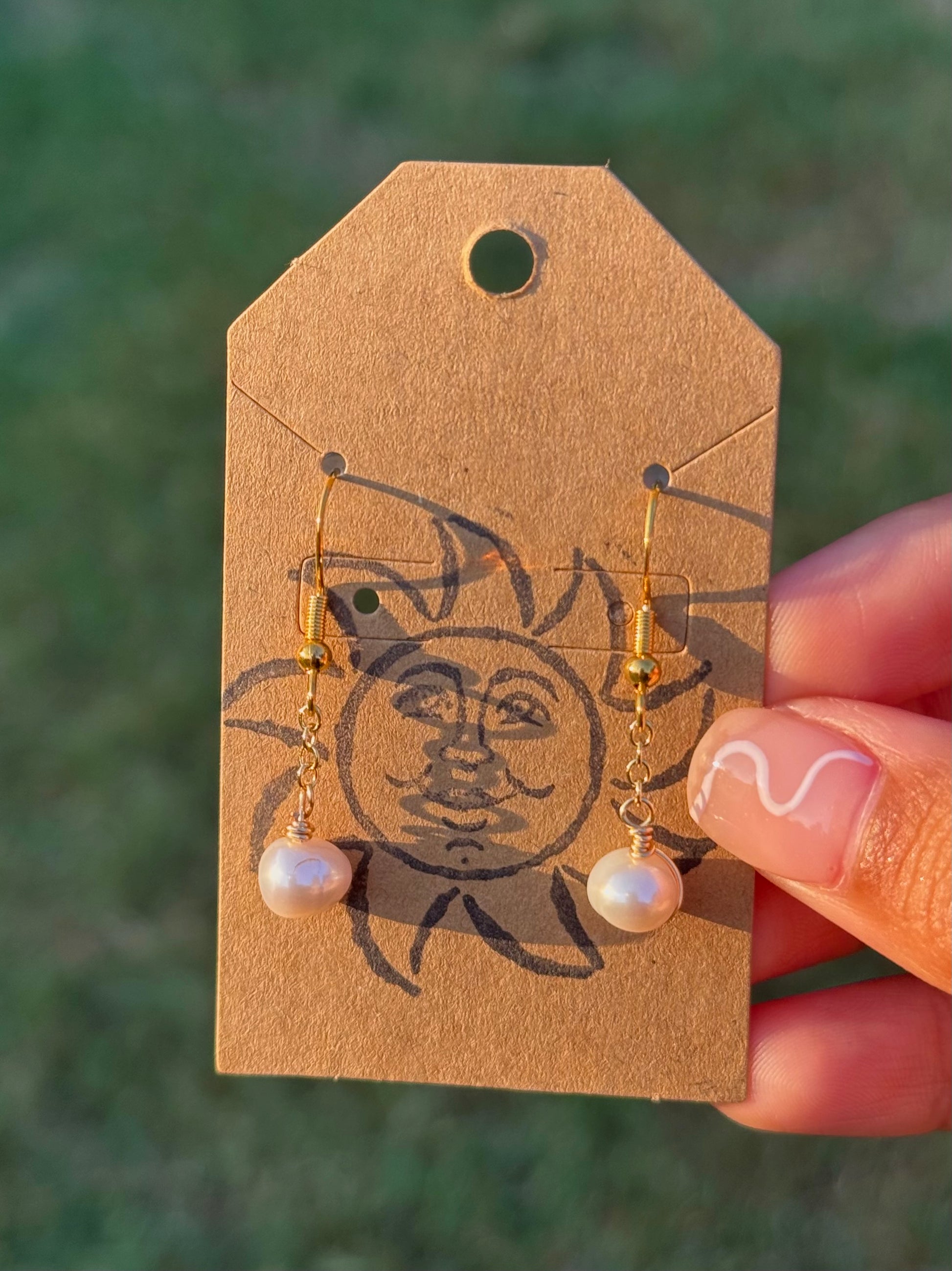 The simple, modern, chain-incorporated design features one pearl per ear on a dainty gold or silver plated chain.