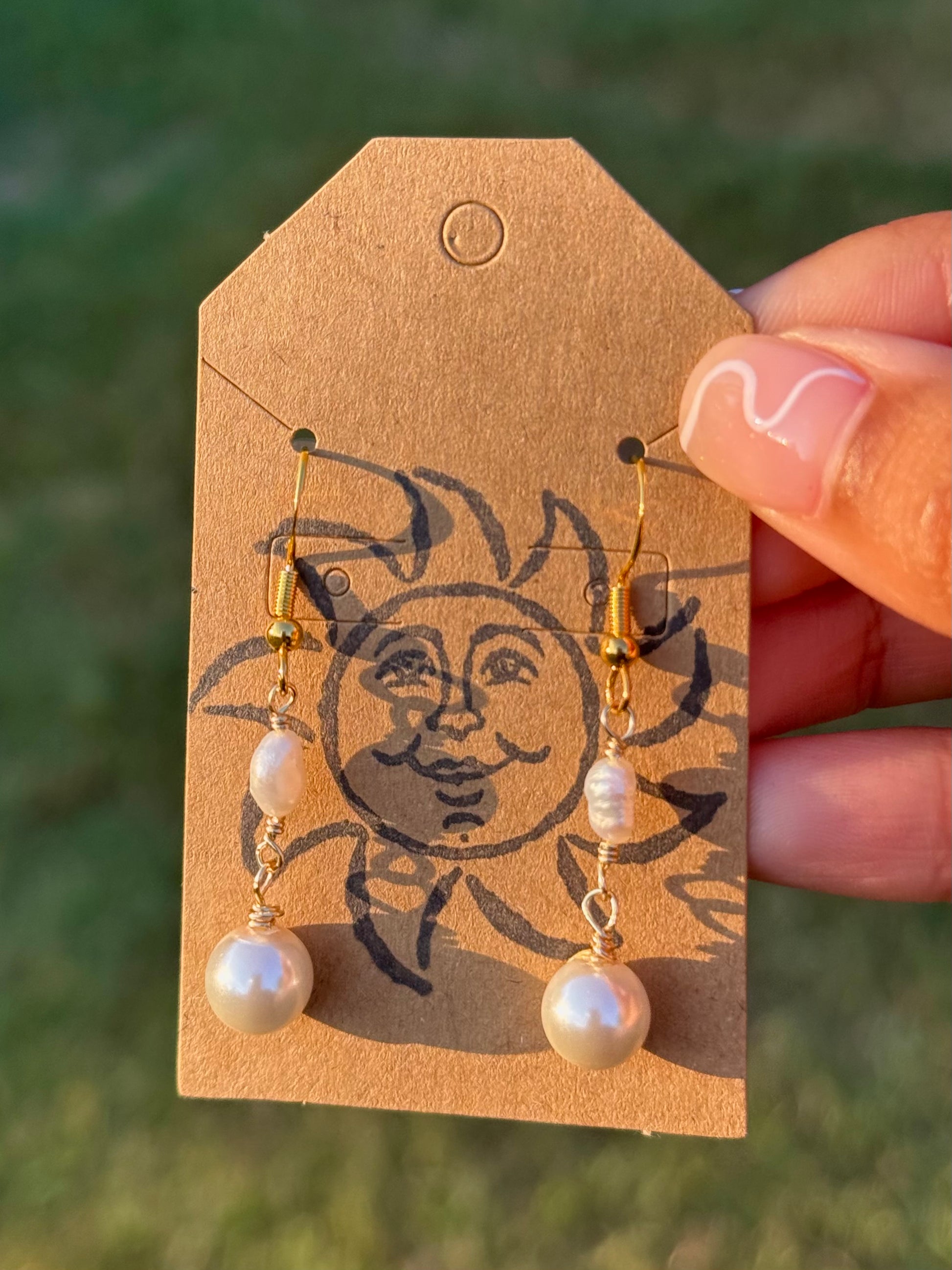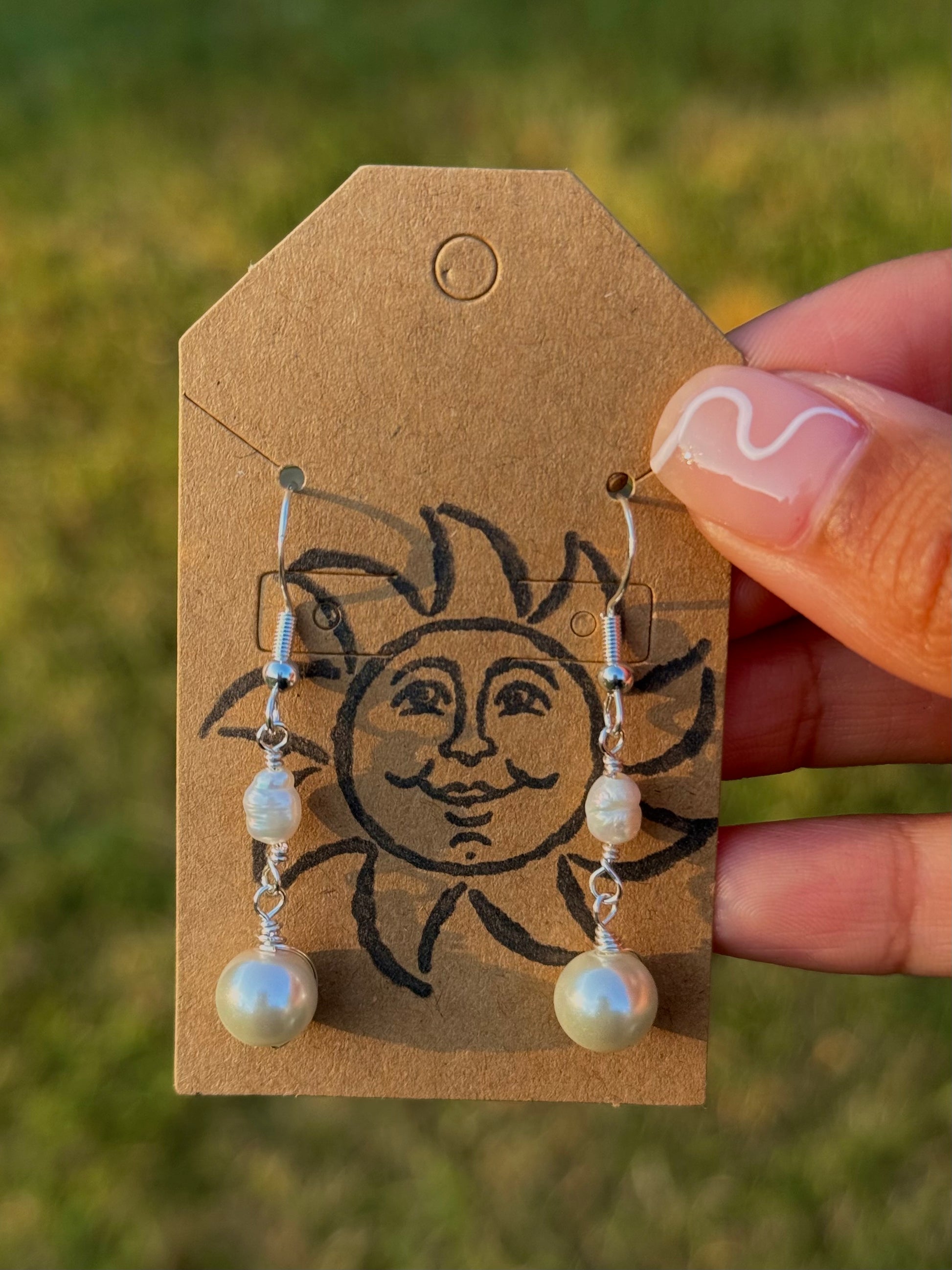 a dual size, simple pearl look containing one pearl bead and mini freshwater pearl woven together with gold or silver plated wire!